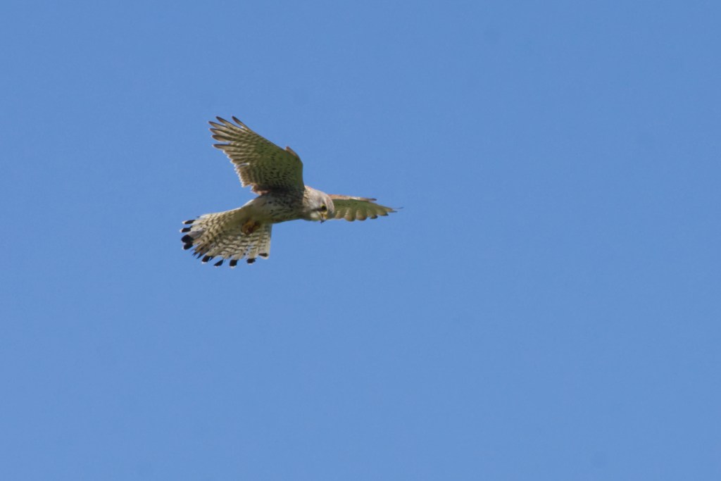 After a period of almost 2 weeks of not seeing the kestrels, we’re now seeing pretty much everyday and now see them hunting, rather than just perching in the trees. If you’ve never seen a kestrel hovering as it spots prey and then swooping down to pounce, then I have to tell you that it’s a magnificent sight.