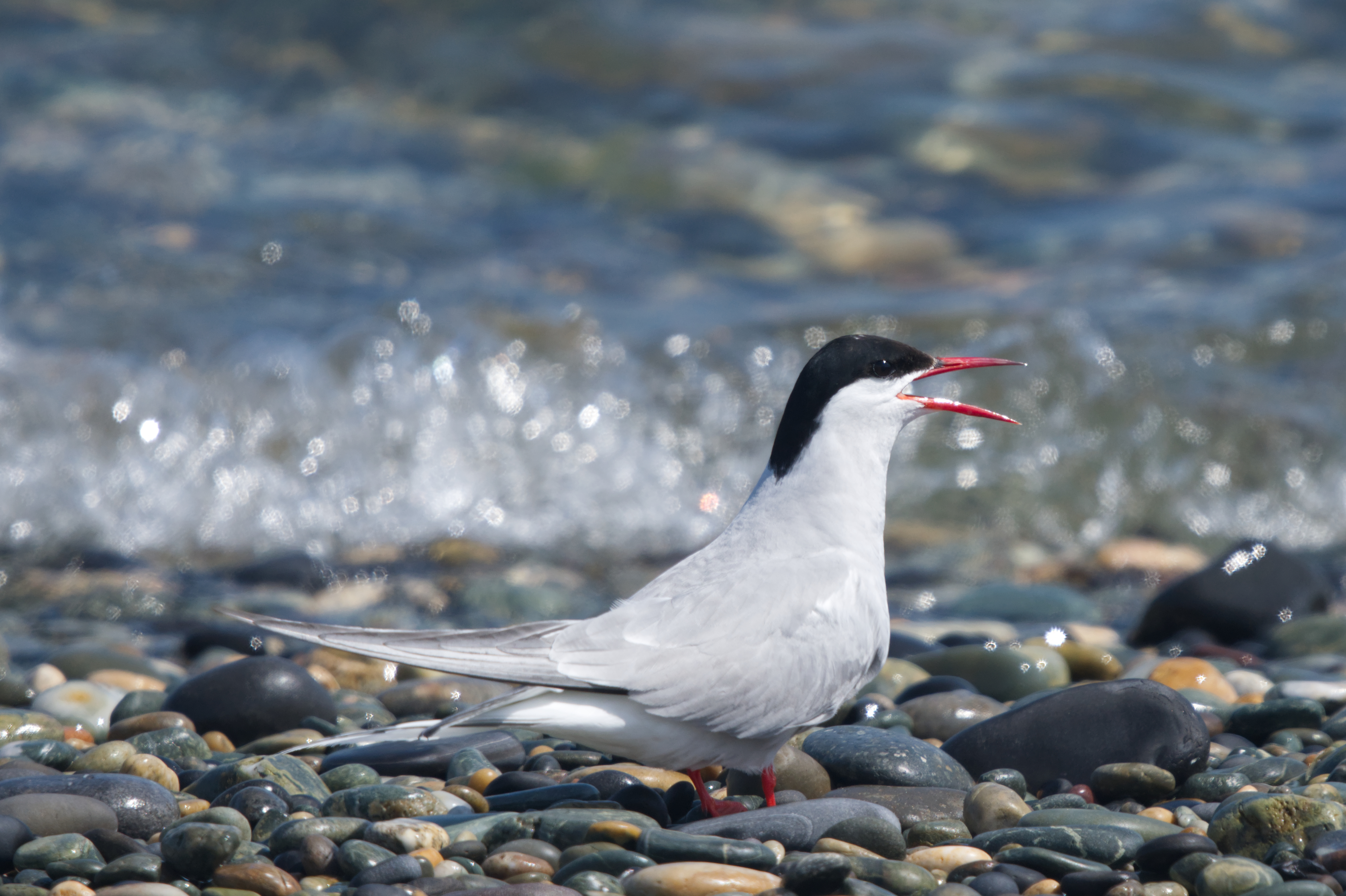 During the week, we do the usual beachy stuff and of course the Ffestiniog Railway, but we’re really there for the wildlife, which is how we found ourselves at Cemlyn Nature Reserve. This narrow shingle ridge, with the sea on one side and a lagoon on the other is a amazing place to see all sorts of coastal birds, however it most spectacularly a nesting site for a huge colony of artic, common and roseate terns during the months of May through to July. We walked along the ridge (just moments from the car park) and sat down on the pebbles to watch hundreds of terns swooping down into the sea and returning to the beach to feed themselves and their grateful young. It truly was one of the most amazing wildlife experiences I’ve had in the UK!