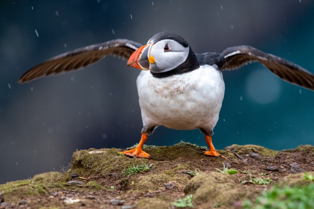 You can clearly see the rain herePuffin drying off its wingsI’ve never seen a stonechat until now.