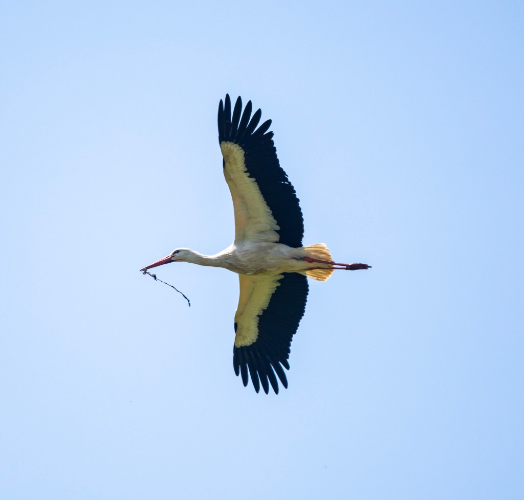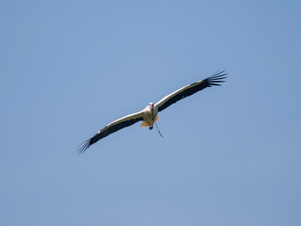 A slow worm, wasn’t very slowMust get back, the kids are starvingBits and pieces for the nestStork in flight