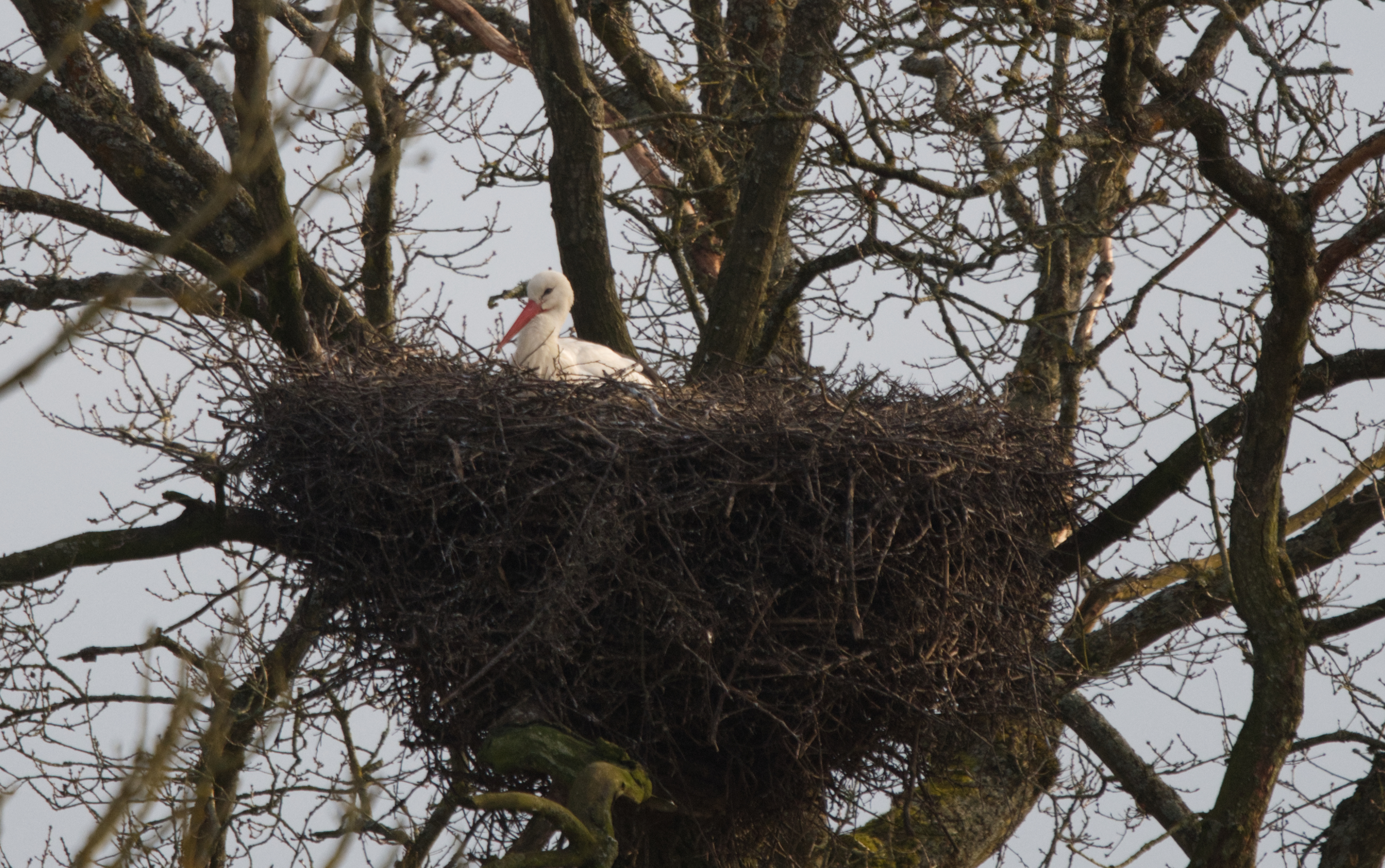 First visit of the year now that the freezing weather has abated and there was a smidgen of sun. The stork’s are back and nesting already.